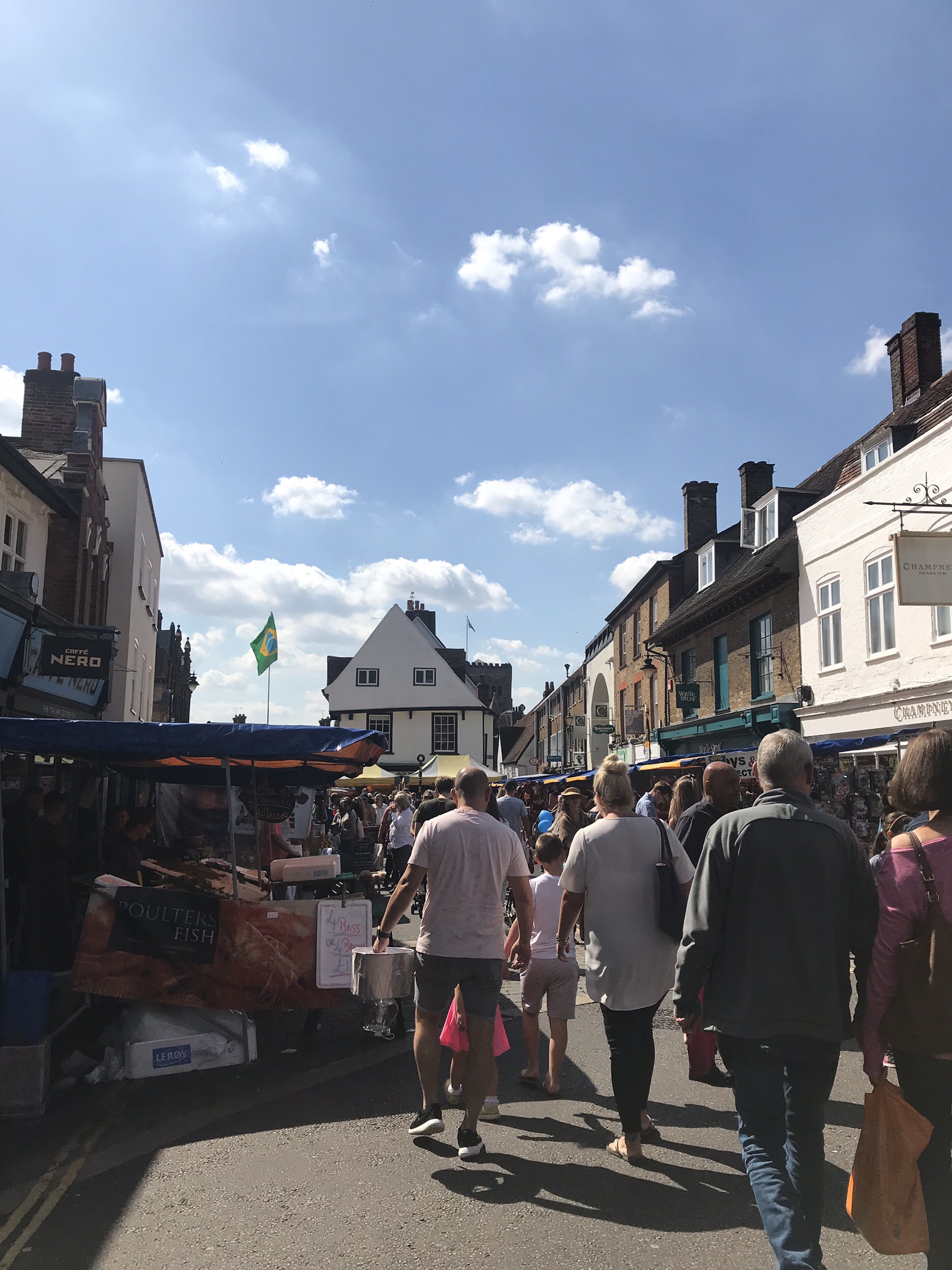 St Albans es una ciudad en el sur de Hertfordshire, Inglaterra, a 20 millas (32 km) al norte de londres, en el pasado la ciudad de la tribu celta Catuvellauni y la ciudad romana de Verulamium. Es la ciudad más antigua de Hertfordshire. Pero hoy me voy a enfocar en mi actividad favorita del pueblo. El mercado semanal; El mercado está impregnado de historia con una carta real especial otorgada en 1553, está bien documentado desde el siglo noveno. hoy en día está firmemente establecido en el centro de la ciudad y se extiende a lo largo de St Peters street. Inicia a las 8:00am termina a las 5:30 pm. En el mercado se puede encontrar desde un botón hasta comida de todo el mundo. El mercado tiene lugar todos los miércoles y sábados y es un deleite de colores, multiculturalidad y comida. St Albans es una ciudad llena de historia y poco a poco voy a contarles un poco sobre mis lugares favoritos en esta ciudad. Hoy les comparto un poco del mercado local.